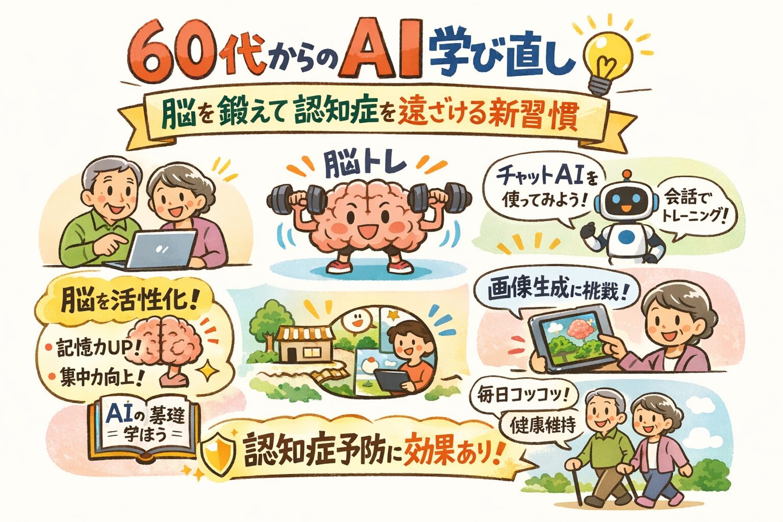 近年の老年医学や脳科学の分野では、60代からの「積極的な学び直し」が、脳の認知機能を維持し、認知症の発症リスクを遠ざける可能性について非常にポジティブなデータが揃いつつあります。中でも、AIを学ぶことは、かつて部下に指示を出していた頃のような「論理的思考」を必要とするため、脳にとって極めて良質で新鮮な刺激となります。