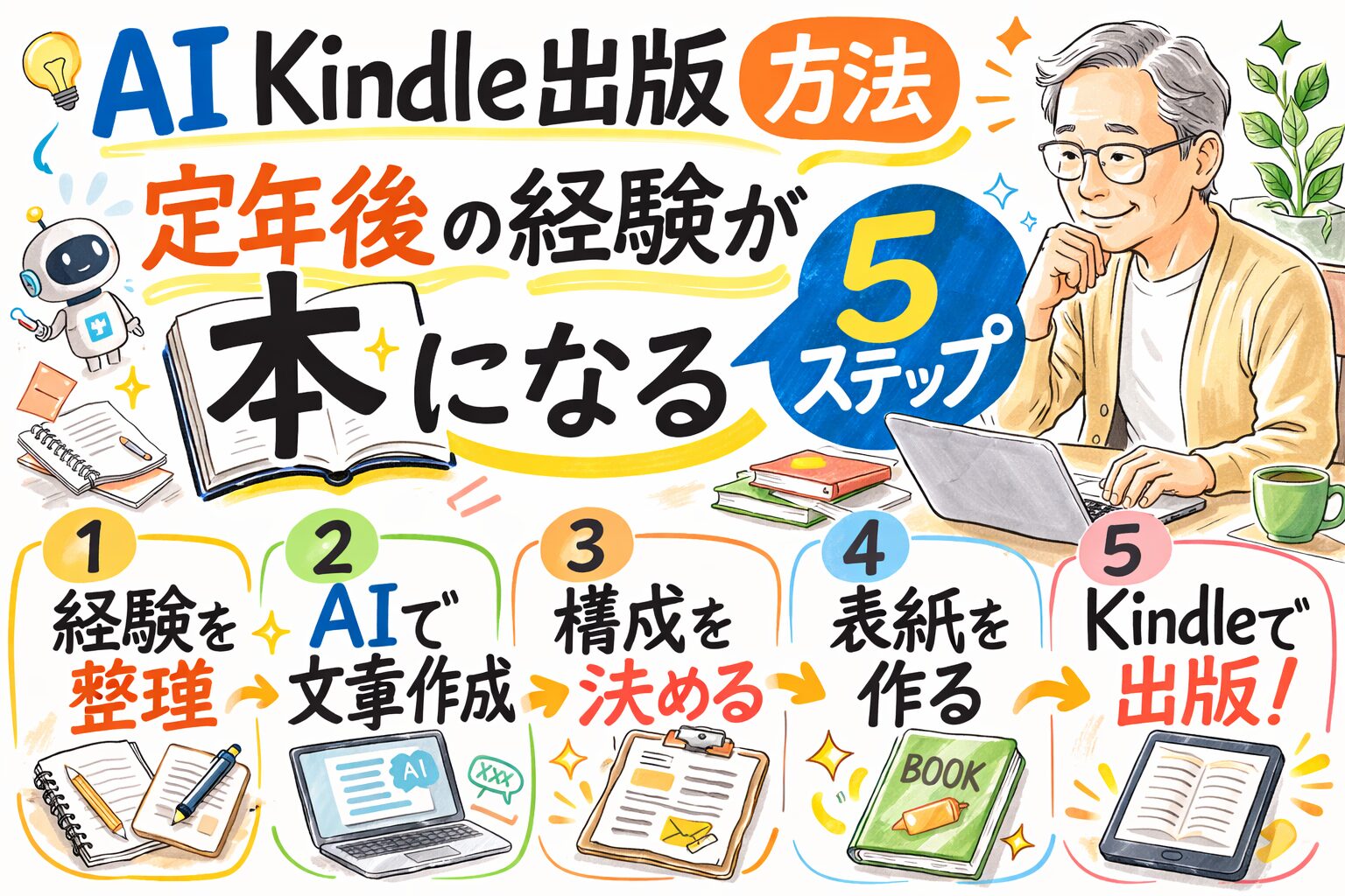 AI Kindle出版は、次の5つのステップで進めるとスムーズです。