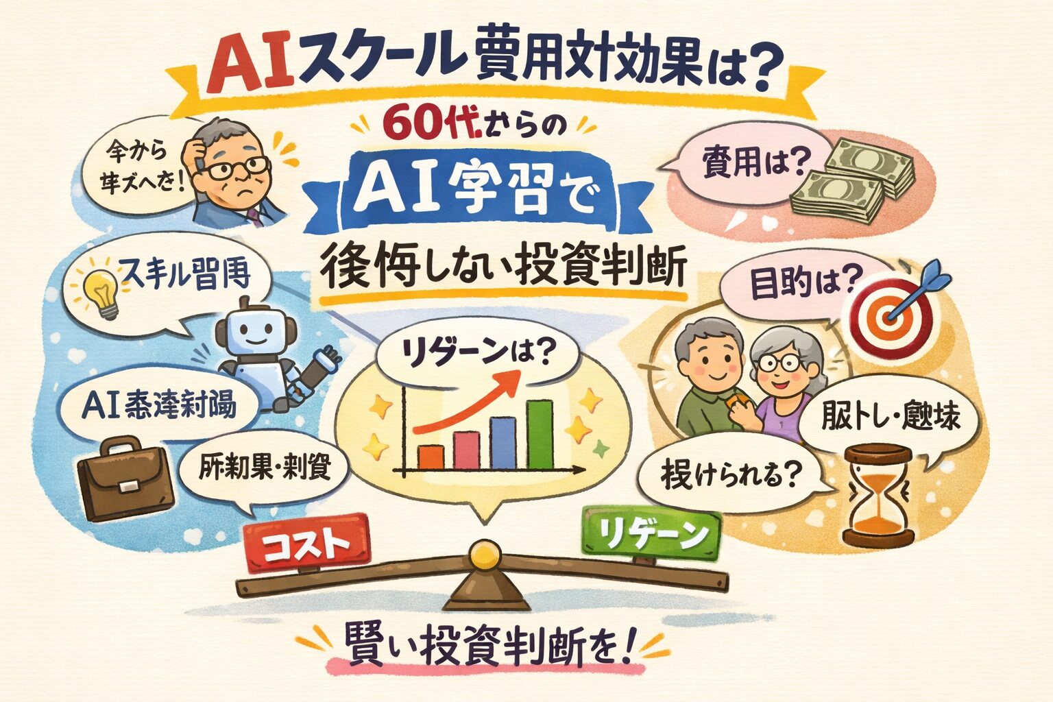 本記事では、知的欲求が強く、無駄を何より嫌う60〜70代の方々に向けて、AIスクールの費用対効果を「実利(収益)」と「精神(社会貢献)」の両面から徹底的に解剖します。