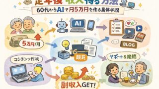 不安解消&マインド 定年後 収入 得る 方法|60代からAIで月5万円を作る具体手順 定年後 収入 得る 方法をプロが伝授。60代・70代からAIを相棒に、40年のキャリアを「月5万」の資産に変える3つの戦略とは?リスクを抑え、社会との繋がりと知的な生きがいを同時に手に入れる最新ロードマップ。 2026.03.19 不安解消&マインド