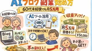 AIで収益化 AI ブログ 副業 始め方|60代未経験でも月5万円 定年後の知恵を資産に変える!60代からのAIブログ副業の始め方を徹底解説。ChatGPTを「秘書」にし、低リスク・低コストで社会との繋がりと副収入を両立。未経験でも安心の3ステップで知的な第二の人生を。 2026.03.10 AIで収益化