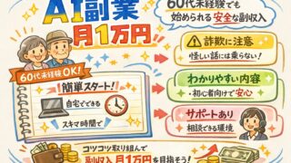 AIで収益化 AI副業 月1万円|60代未経験でも始められる安全な副収入 AI副業で月1万円稼ぐ!60-70代の未経験者でも始められる手順を解説。定年後の社会貢献や脳トレに最適。PC1台、最小限の投資で人生経験をデジタル価値に変える「令和の隠居術」を公開。 2026.03.13 AIで収益化